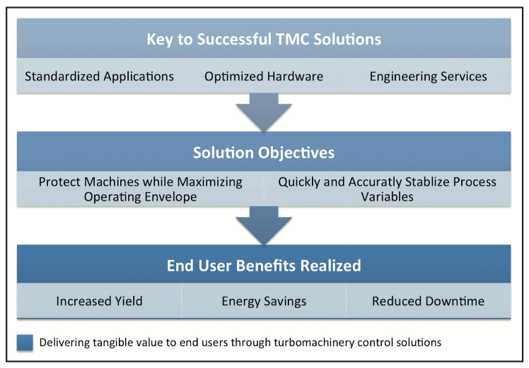 Los sistemas de control para turbomaquinaria (TMC por sus sigla en Ingles), como el control de antisurge y de reparto de carga, así como las plataformas de hardware, han evolucionado para proporcionar una respuesta más rápida de los sistemas de control permitiendo una mayor disponibilidad y estandarización de las aplicaciones.
